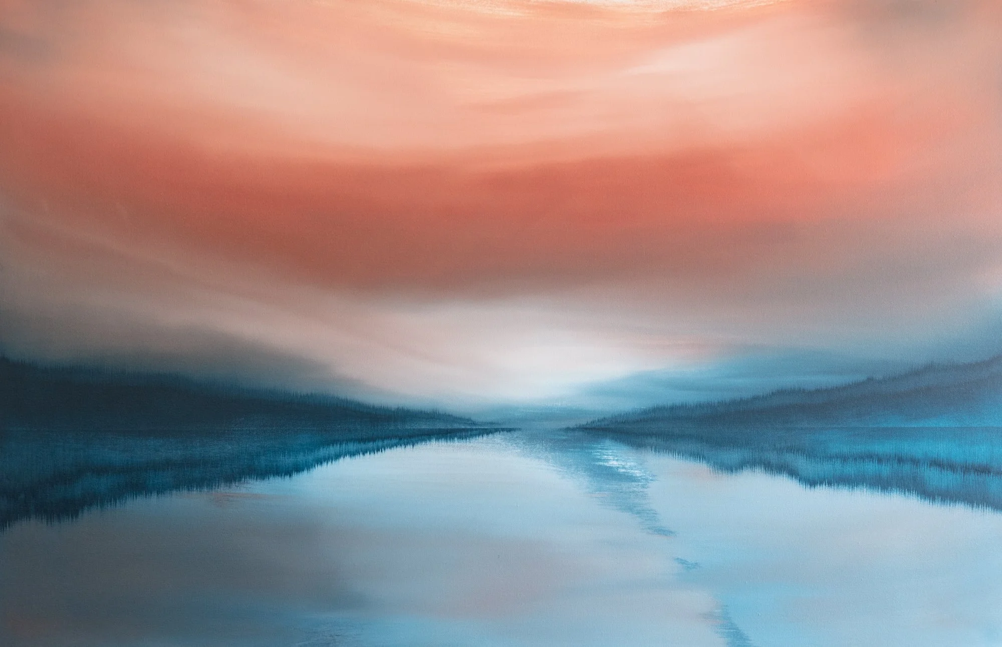 Water is an endless source of fascination for me , whether it is the sea, a lake or a river, I’m drawn to the way its surface is never still. It shifts from moment to moment, sometimes revealing its depth, sometimes reflecting the sky so completely that what lies beneath disappears. This constant movement, this duality of showing and hiding is what compels me to paint it.